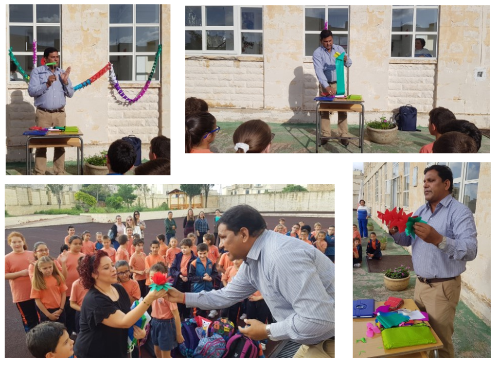 Students and educators had a wonderful shared by Mr Bal Ram from New Delhi India. Mr Ram made amazingly beautiful flowers from kite paper.