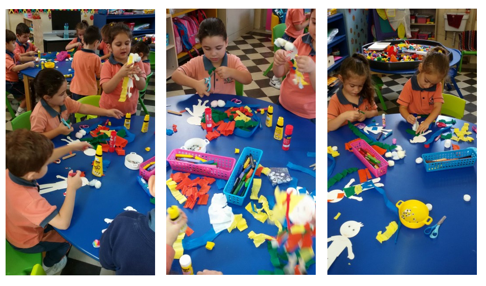The K2.1 students of Ms Natalie Attard have been very busy developing their fine motor skills. Above children can be seen preparing their own food, and below students enjoying cutting and sticking, thus developing eye-hand coordination and fine motor skills.