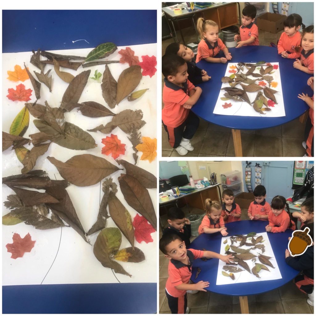 We discussed about autumn leaves and their changing colour. We went outside as a group to pick up dry leaves from the ground and they created a collage from the leaves they picked up.