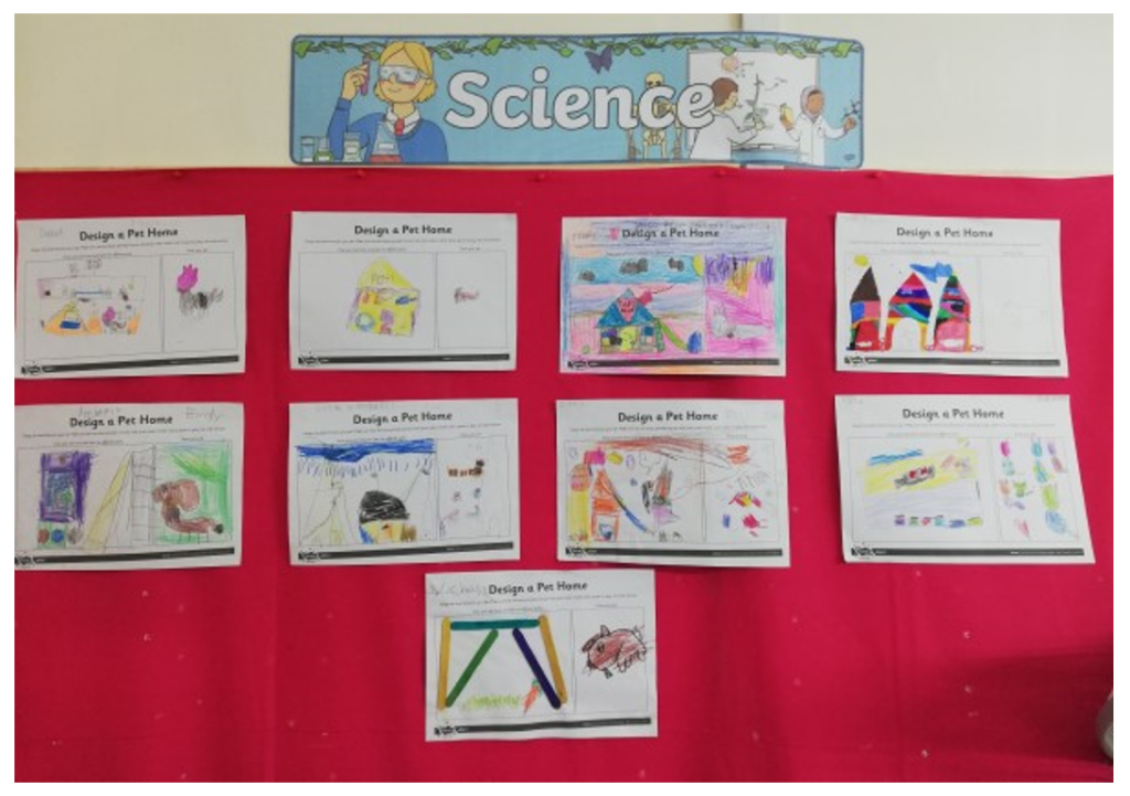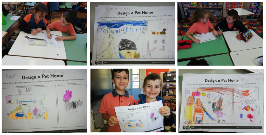 During this activity the children were applying their scientific knowledge about what living things need to survive while designing an ideal home for their pet.