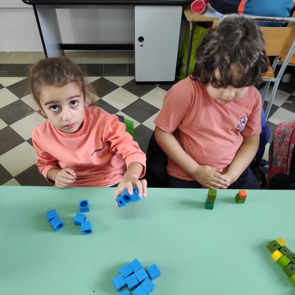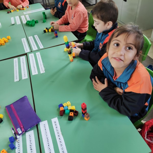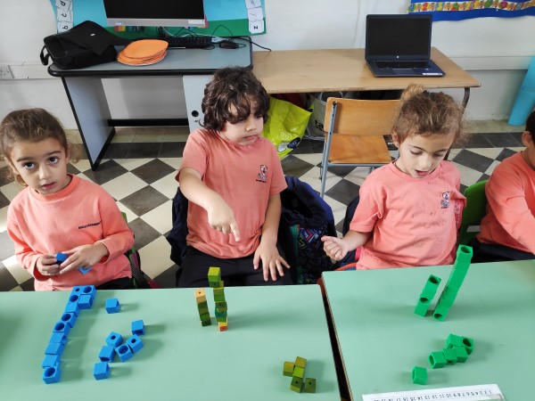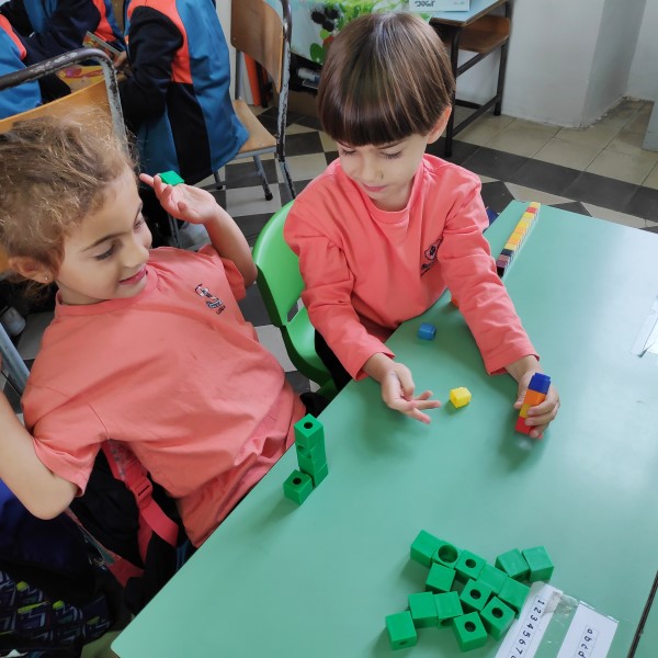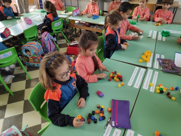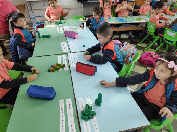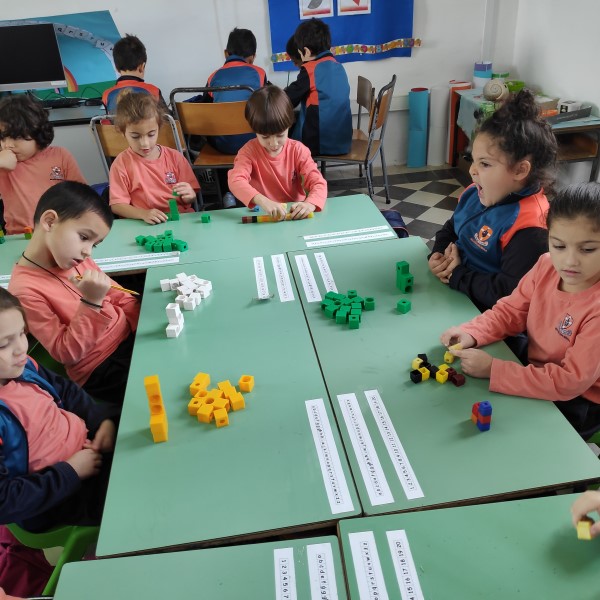 Year 1 students learning about number value using a concrete approach. Children learn by doing.