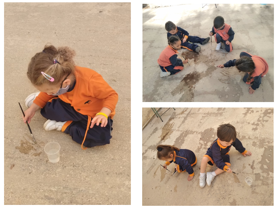 Children love playing with water. While enjoying the outdoors the children painted their own creations with water, while being given the opportunity to explore evaporation. This is how children learn… by kindling their curiosity.