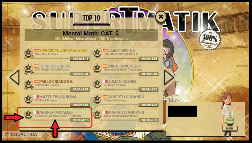 The school proudly announces the amazing results achieved by 20 of our students who participated in the SuperTmatik international maths competition. The students have ranked really well in their categories. Well done to Andrea Micallef for placing 5th out of 75810 students and Andre Aquilina for placing 33rd out of 75810 students. Super well done to all